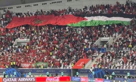 رسالة وفاء من نصف النهائي.. الجماهير المغربية ترفع علم فلسطين والمغرب في كأس العرب