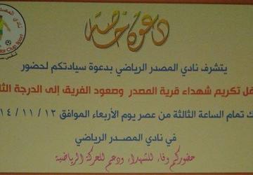 المصدر " يستعد " لتكريم فريقه الصاعد وشهداء القرية