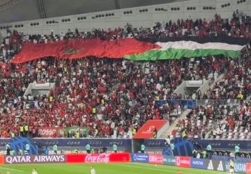 رسالة وفاء من نصف النهائي.. الجماهير المغربية ترفع علم فلسطين والمغرب في كأس العرب