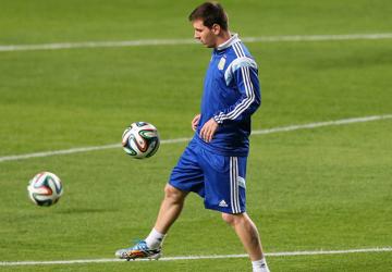 بالصور.. ميسي واجويرو يداعبان البارزوكا