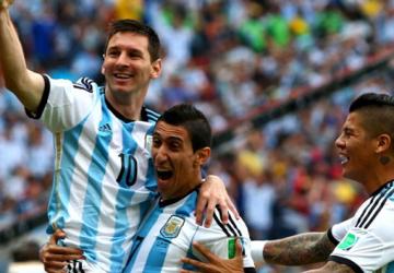 ليونيل ميسي ودي ماريا لاعبا المنتخب الأرجنتيني