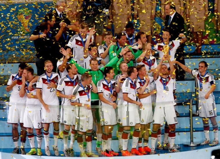 بعد الأداء الخرافي للماكينات الألمانية في أرض السحرة ضمن بطولة كأس العالم الأخيرة 2014 بالبرازيل، تُوِّجت ألمانيا بجدارة واستحقاق باللقب الأغلى لتضيف النجمة الرابعة التي ملّتْ من معايرة إيطاليا بها ليتساوى المنتخبان بأربعة ألقاب مونديالية.