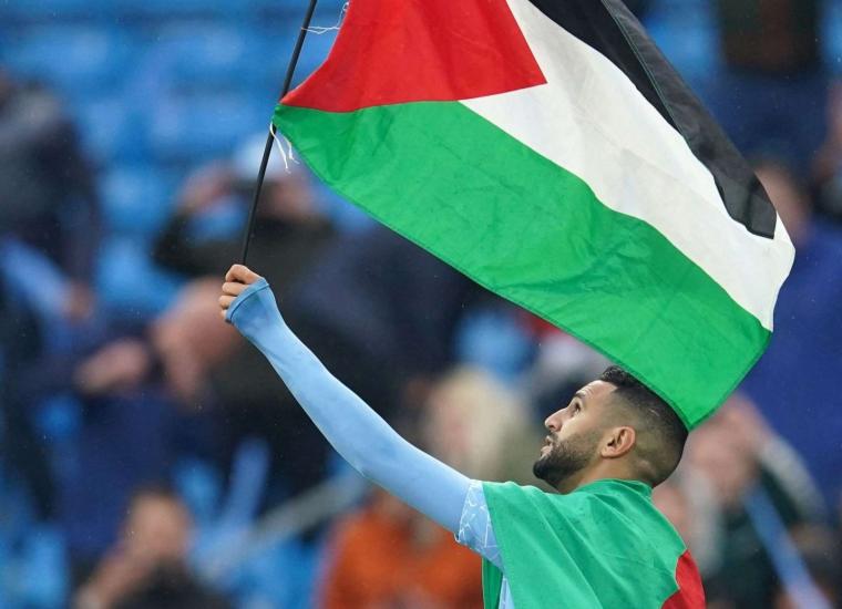 وأظهرت الصورة التي شاركها محرز الشريف مبتسمًا بسترة الصحافة الزرقاء وقد أرفقها اللاعب بعلم فلسطين في رسالة تضامن واضحة مع القضية الفلسطينية.