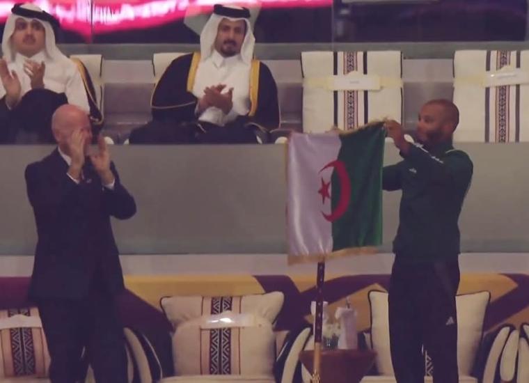 شهد ملعب البيت في الدوحة لحظة مميزة قبل انطلاق حفل افتتاح بطولة كأس العرب 2025، حيث دخل النجم الجزائري ياسين براهيمي أرضية الملعب وهو يرفع علم بلاده الجزائر بفخر كبير، باعتباره أحد أبرز نجوم "محاربي الصحراء" وحامل لقب النسخة الماضية من البطولة عام 2021.