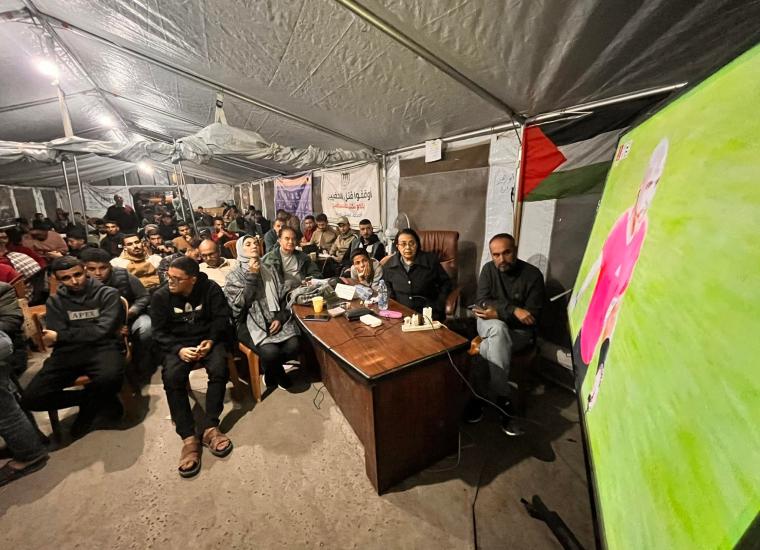 شهدت خيمة نقابة الصحفيين بمدينة غزة مساء اليوم تجمعًا كبيرًا للإعلاميين الذين تابعوا باهتمام مواجهة المنتخب الوطني الفلسطيني أمام نظيره السوري في بطولة كأس العرب 2025.