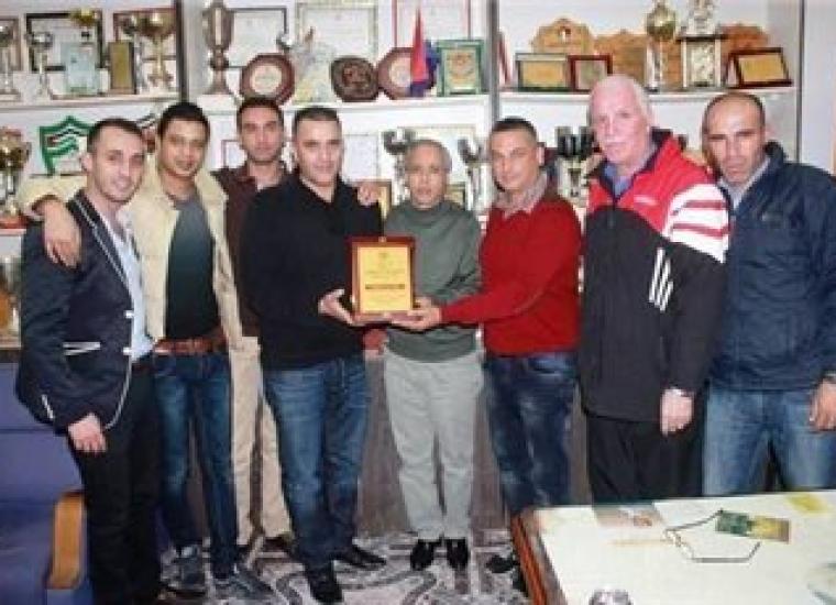 أستقبل إبراهيم أبو الشيخ أمين سر نادي غزة الرياضي وعطا الله أبو عاصي عضو مجلس الإدارة مدير كرة القدم السيد مازن النتشه رجل الأعمال الفلسطيني ـ مدير محطات الهدى للمحروقات في المحافظات الشمالية " الضفة الفلسطينية " برفقة عاصم أبو عاصي كابتن فريق كرة القدم الأول بالعميد.