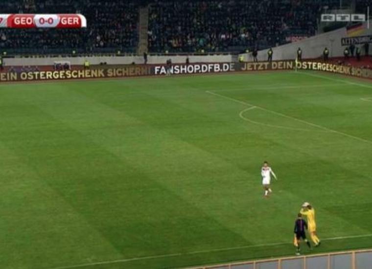 في المباراة الماضية التي جمعت بين المانيا وجورجيا في تصفيات امم اوروبا قام الحارس الالماني بتفيذ رمية تماس وهي لقطة تعد نادرة في كرة القدم ادهش بها الحارس جميع من في الملعب .